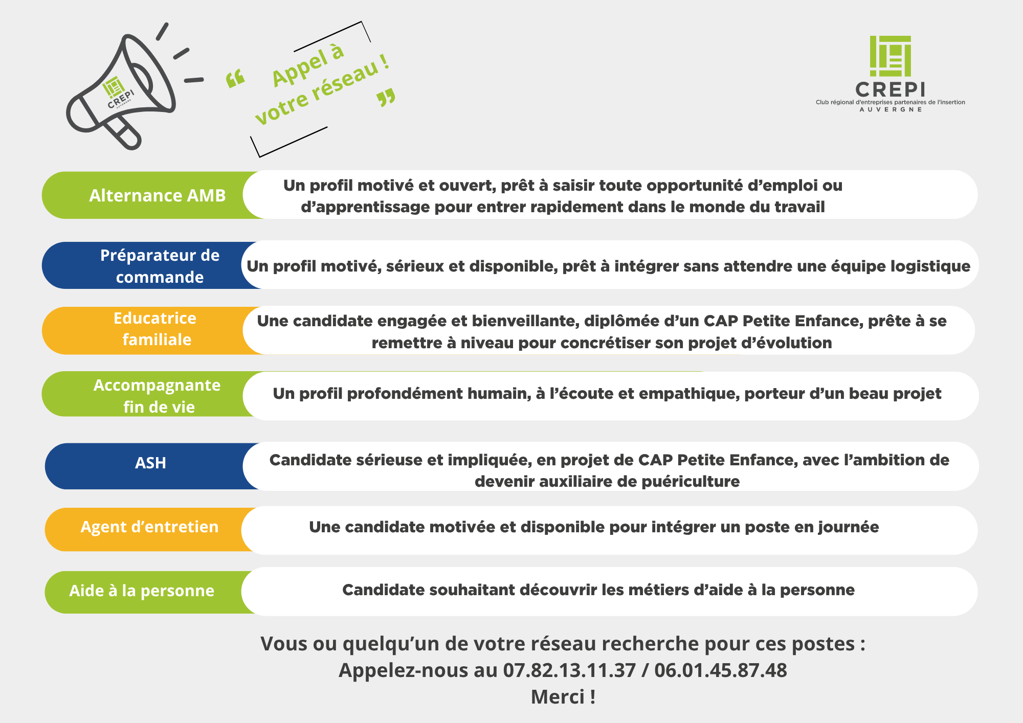 CREPI Auvergne - Plusieurs de nos candidats sont actuellement en recherche active d'opportunités professionnelles sur le bassin Clermont-Ferrand