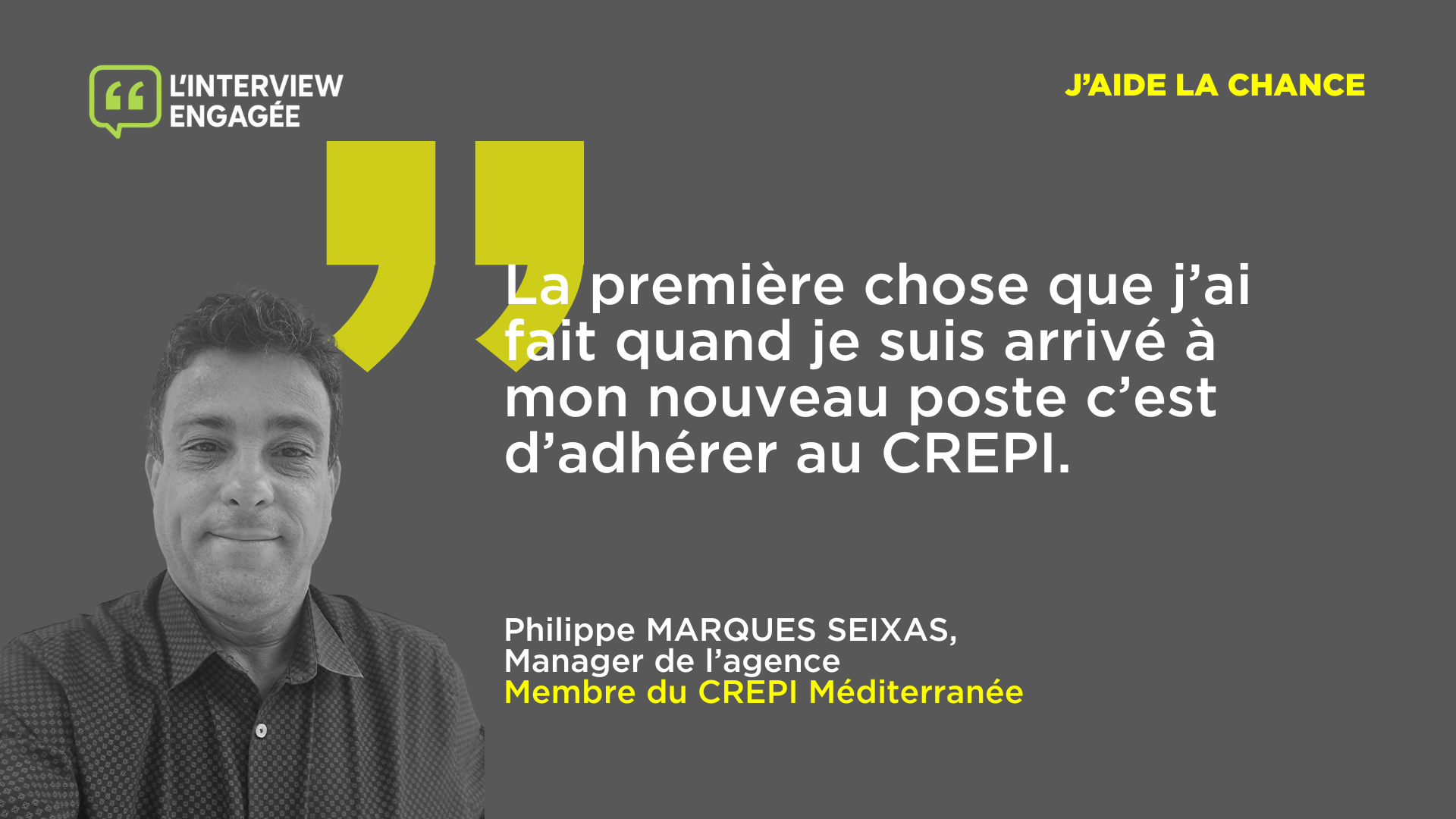 Engagé dans l’insertion depuis près de dix ans, Philippe MARQUES est l’un des piliers du CREPI Méditerranée, de ceux qui lui reste fidèle d’un employeur à l’autre. Après 9 ans chez Actual où il a découvert et adhéré au CREPI, Philippe est aujourd’hui manager de l’agence « J’aide la chance » à Aix-en-Provence, une Entreprise de Travail Temporaire (ETT) appartenant au Groupe Belvédia basé à Cagnes-Sur-Mer. Depuis ce nouveau poste, il reste un membre actif et engagé. Rencontre avec un acteur de terrain convaincu, et convaincant.