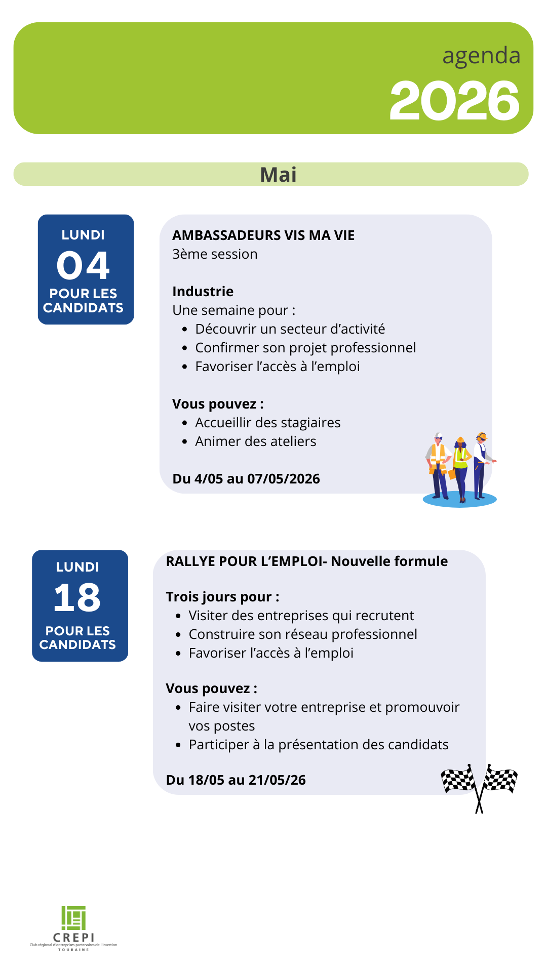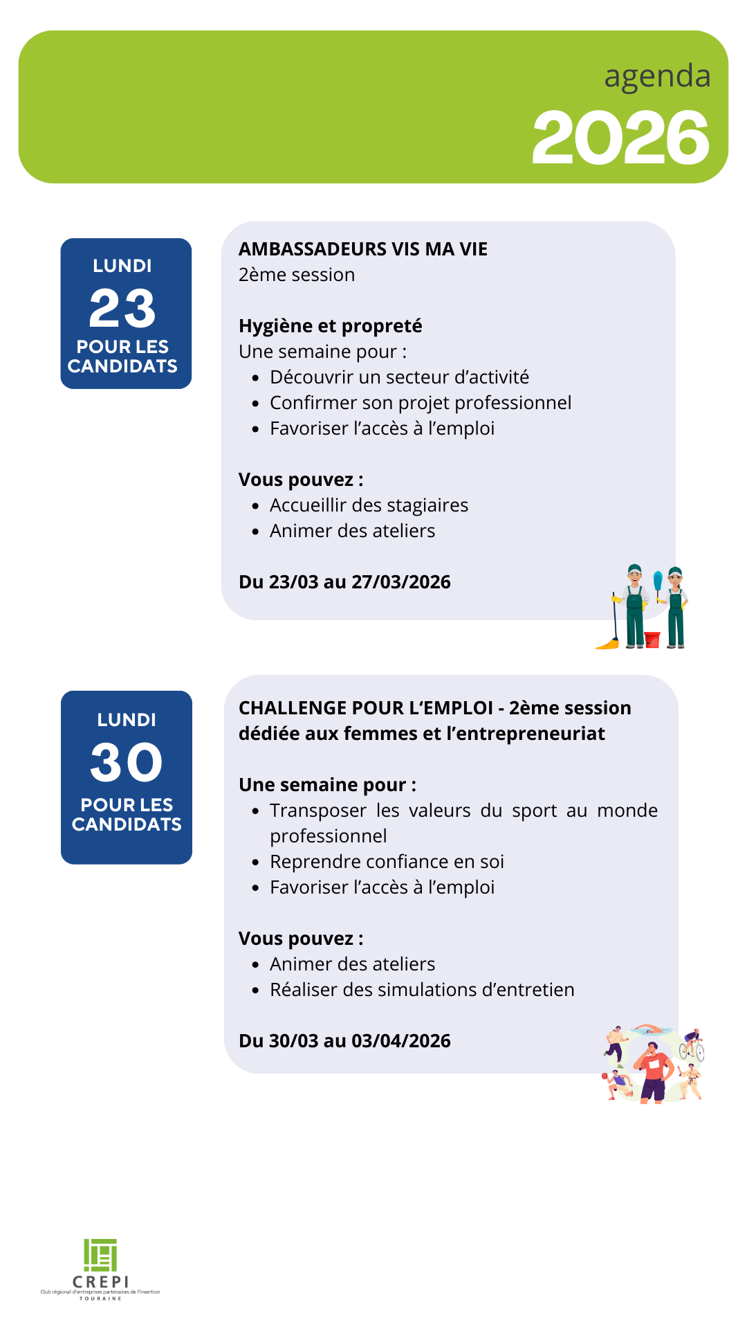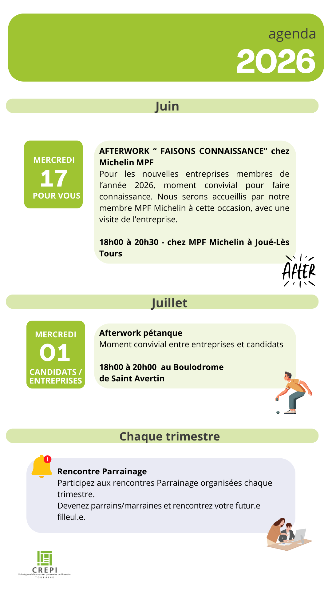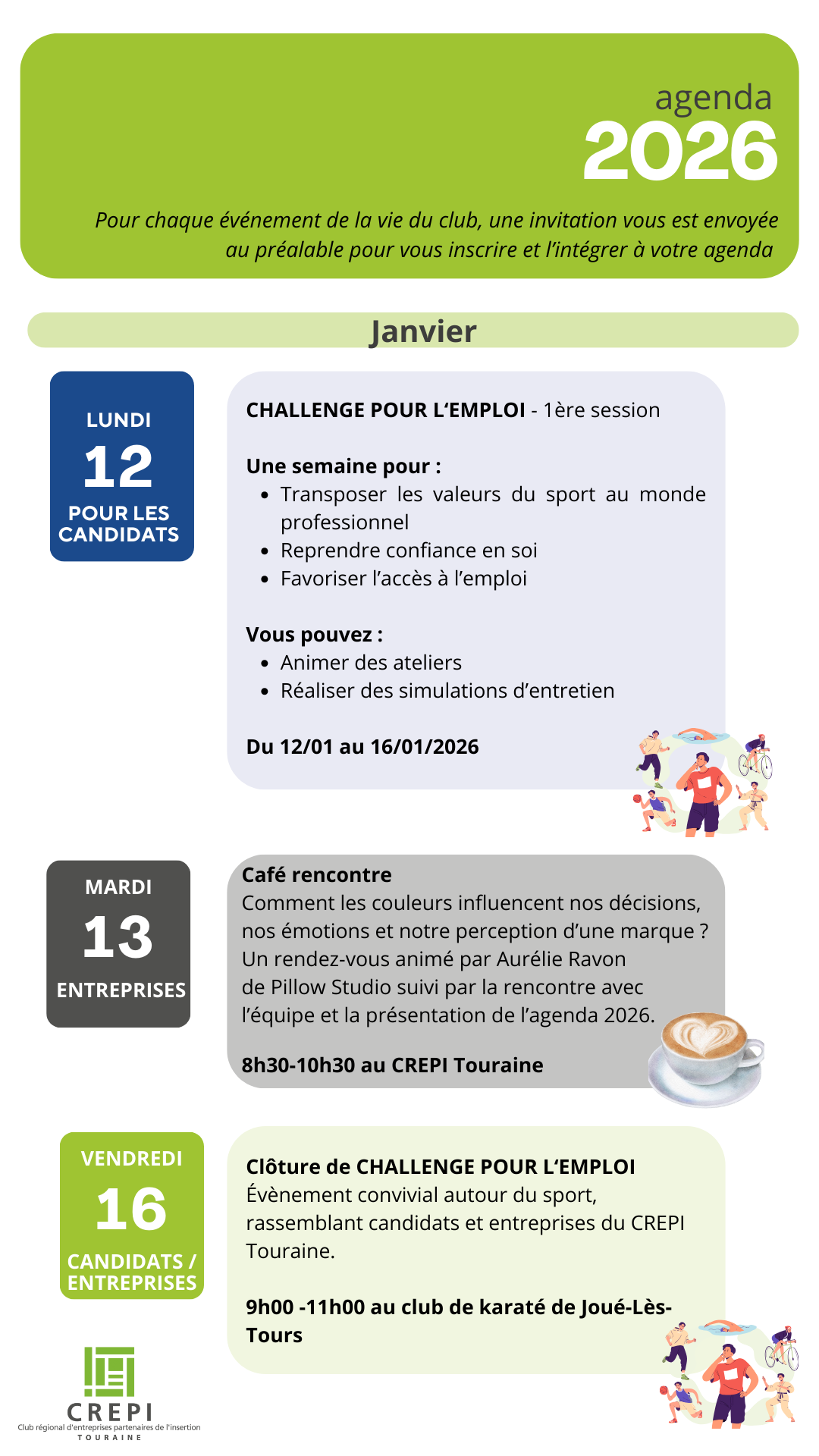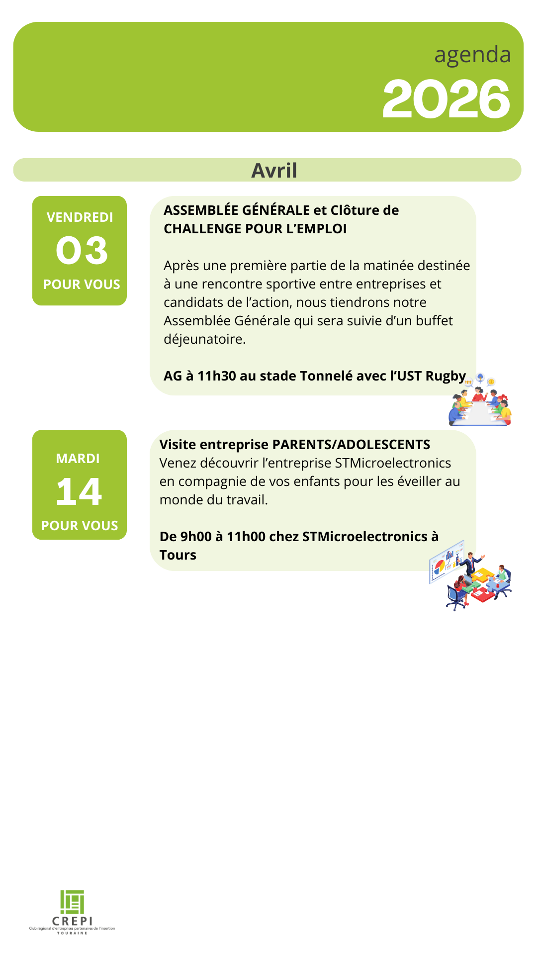 Découvrez l'ensemble de nos actions et événements de la vie du club pour ce 1er semestre 2026