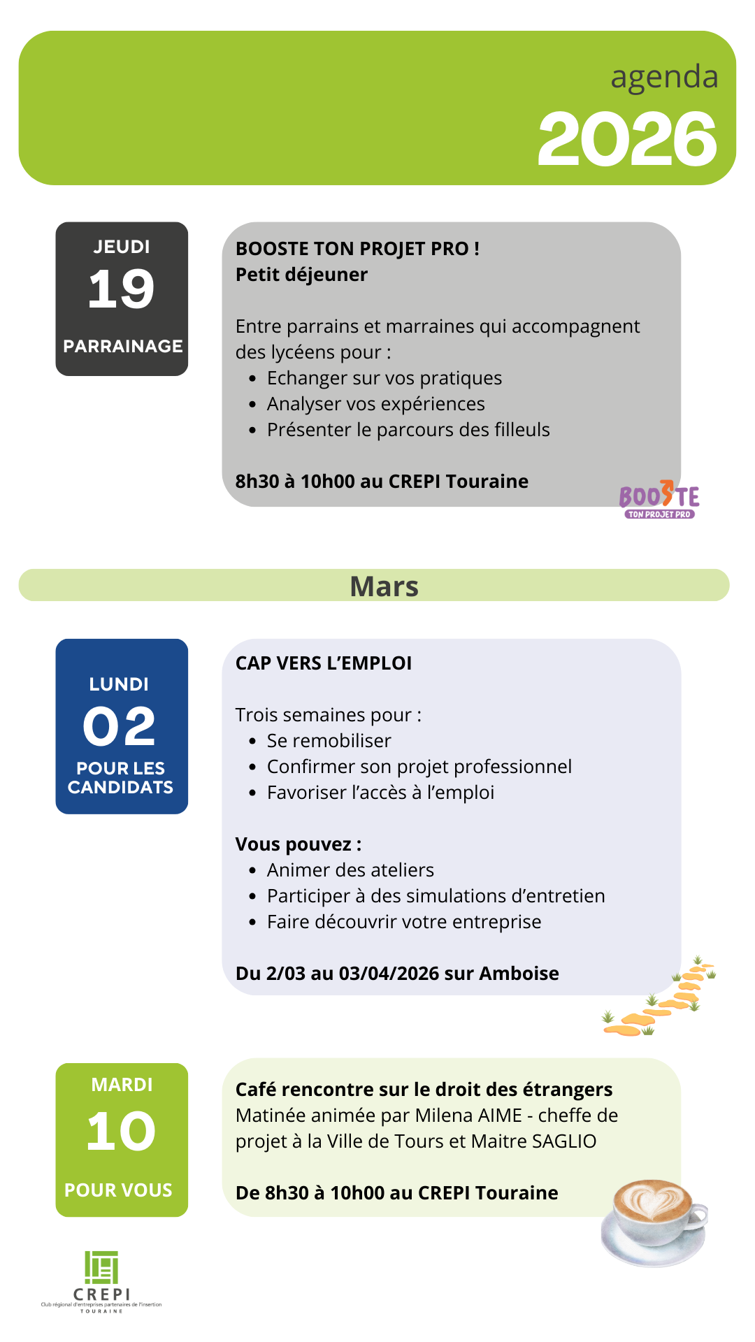 Notre agenda de ce 1er semestre 2026 est enfin là !